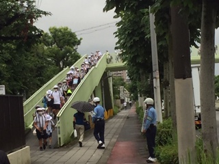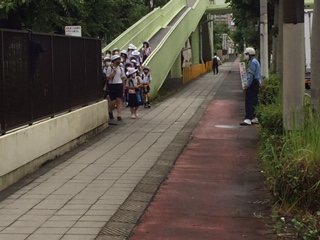 今日の登校風景(7月12日(火)) 公開日 2022/07/12 更新日 2022/07/12 学校日記 今日の登校時、城東警察の方が見守りをしてくださいました。登校してくる児童に「左右の確認をしてね。」と声をかけてくれています。大きな道路に大きな車も通ります。自転車に乗っている人や走っている人もいます。お互いに気を付けて、けがのないようにしていきたいですね。お忙しい中、城東警察署のみなさん、ありがとうございました。 いいね(0)