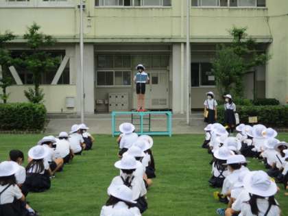 久しぶりにみんなの元気な声が森之宮小学校に戻ってきました。二学期の始業式を運動場にて行いました。二学期は運動会や全校遠足、土曜参観や防災訓練など、たくさんの行事が予定されています。一人ひとりがめあてをもって、充実した学校生活を送ってほしいと願っています。児童の発表では「本番に向けて、運動会の練習を頑張りたい」という、力強い言葉を聞くことができました(^-^)
