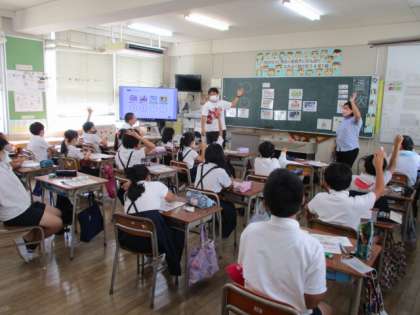 毎週水曜日に、外国語の授業をサポートしてくれる先生が来てくれます。本校に来てくれているのはベル先生。明るく優しい先生で子どもたちとも積極的にコミュニケーションを取ってくれます♪今日は4年生の子どもたちと時刻についてフラッシュカードやデジタル教材を使用しながら楽しく学ぶことができました。