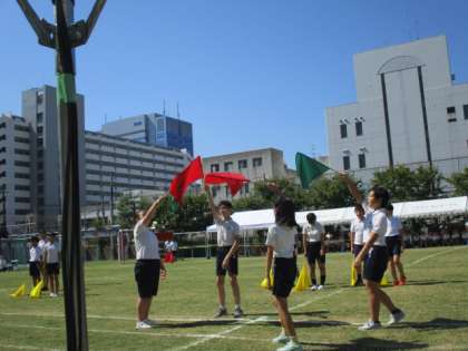 5・6年生、圧巻のフラッグパフォーマンス! みんな釘付けでしたねえ…(*^-^*)