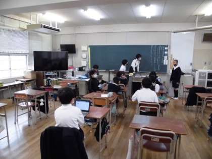 委員会活動では放送委員会の活動現場にお邪魔しました。何やらパソコンを使いながら話し合い?を進めていて「おっ、すごいなあ」と感じました。