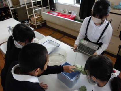 4年生は理科の学習で実験を行っていました。理科と言えば実験のイメージが強いと思いますが、4年生の2学期から理科室等で実験器具を使いながら始めていきます。