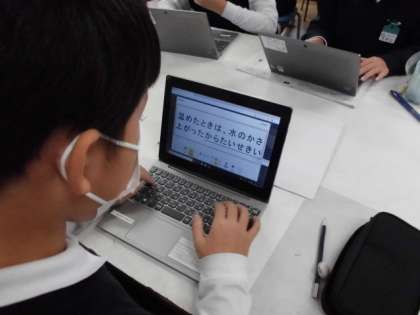 結果をタブレットに打ち込み、電子黒板でみんなの意見を共有していてIT化が少しずつ進んでいます!