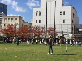 天気も晴れて、とてもいい気候の中、PTA主催の森之宮親子運動会が開催されました。小さいお子さんからお家の方も参加できる運動会です。アナウンスは森之宮小学校の児童が行い、子どもも大人もとても楽しい時間を過ごしています。