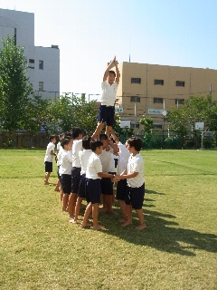 5・6年生 団体演技 公開日 2013/10/18 更新日 2013/10/18 5年 「可能性〜無限の未来〜」 安室奈美恵の「Fight Together」のリズムに乗って軽快にかっこよく踊ります。 後半は森之宮小伝統の「動きのある組体操」を披露します。 ↓ 続きはこちら 閉じる 6年生は最後の運動会、5年生はあこがれの組み体操に挑戦。これまでの名物演技「立ち上げピラミッド」「起き上がりこぼし」など、ダイナミックな演技はもちろん、新技に挑戦しています。当日のみなさまのご声援が子ども達の背中を押します。是非ご期待ください。 写真は「おきあがりこぼし」 いいね(0) 6年