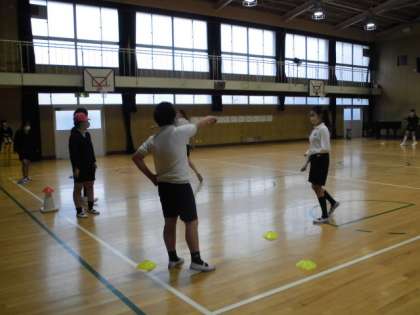 今日の様子です 公開日 2023/02/10 更新日 2023/02/10 学校日記 6年生が講堂で体育の学習をしていました。何やら見慣れないゲーム?みたいなことをやっていたので聞いてみると「スポーツ鬼ごっこ」と呼ばれるものをしていました。普段の鬼ごっこにエリアやルールを決めて、チームの仲間と協力して相手陣地にあるフラッグを取り合うので、作戦などを考えて盛り上がりそうですね(*^^*) いいね(0)