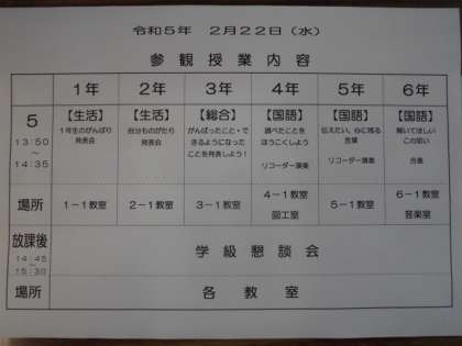 先日もお伝えさせていただいていますが、22日の水曜日は今年度最後の学習参観と学級懇談会があります。何かとご多用のこととは存じますが、ご来校くださいますよう、ご案内申し上げます。