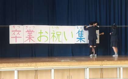 5年生が会場の飾りつけをしてくれました。 公開日 2023/03/06 更新日 2023/03/06 学校日記 明日7日は卒業お祝い集会! 会場となる講堂の飾りつけを5年生が手がけました(^^) 1年生から5年生までのみなさん、アットホームな雰囲気の中で6年生に感謝を全力で伝えましょう! いいね(0)