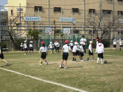今日は少し暑いぐらいの天気でしたね。1年生は体育の学習で、元気に運動場でボールを足で操作する学習をしていました(^^)