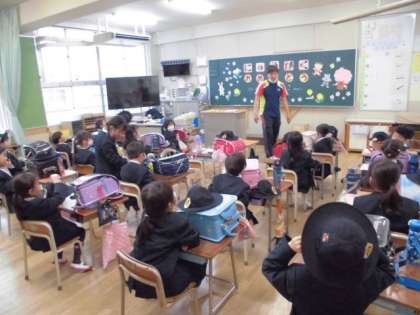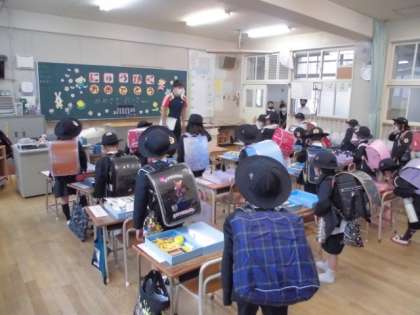 ランドセルを背負い、帽子をかぶって、机の上を整えたら先生と「さようなら!」