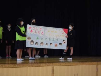 今年度初めての児童集会です。 公開日 2023/04/19 更新日 2023/04/19 学校日記 今日は今年度初めての児童集会でした。まずは、先日の委員会活動、代表委員会で決定した委員長やメンバーの紹介がありました(^^)これから1年間、どのように活動してくれるか楽しみにしています(^^)/ 児童会のめあても決まりました。 「やさしさあふれる えがおいっぱいの 森小にしよう」 とてもあったかいめあてに決まりました(*^^*) いいね(0)