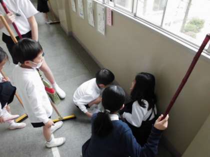 昼の掃除の時間では、1年生も掃除場所をきれいにしていきます(^^)ほうきやちり取りの使い方を6年生に教えてもらいながら一生懸命ゴミを集めている姿にほっこりしました(^-^)