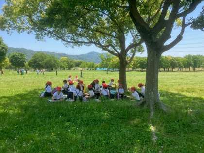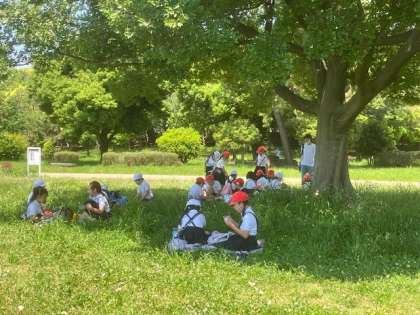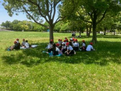 たくさん遊んでお腹すいた〜(;^ω^) 春の日差しを受けておいしいお弁当をいただきます(*^^*)