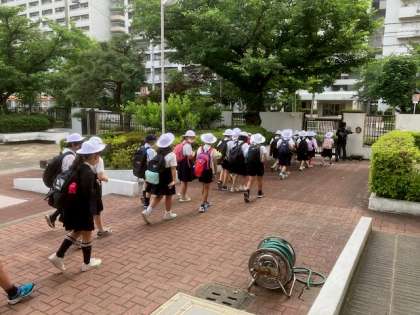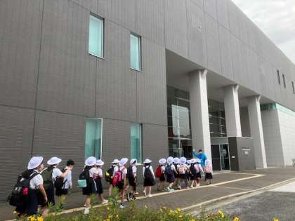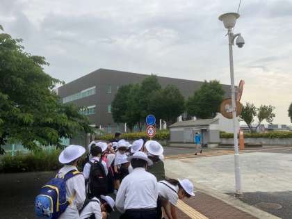 休み明けとなった6日、4年生は全員元気にそろって柴島浄水場へ社会見学に行きました。