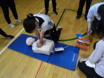 救命救急法講習を行いました。保護者の方にも参加していただき、ありがとうございました。