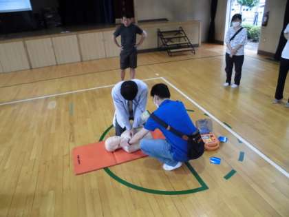 声のかけ方、心臓マッサージの方法やAEDの使い方などをシミュレーション形式で行いました。