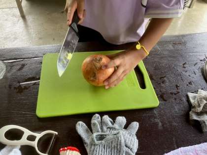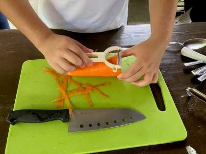 ピーラーで皮をむいて、慎重に野菜に包丁を入れていきます♪