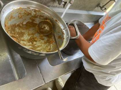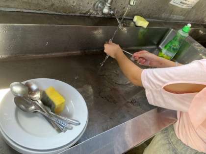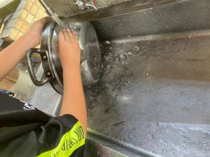 おいしく食べた後は片付けます。食器や調理器具などは、ピカピカになるまでていねいに洗います(^^)/