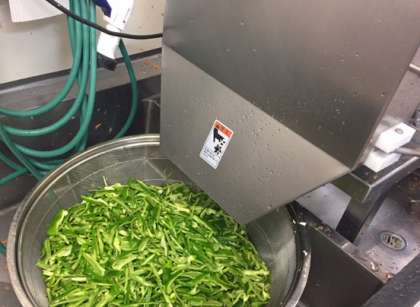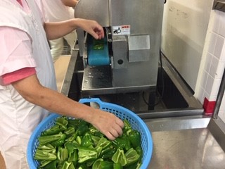 下の写真は、「フードスライサー」といいます。野菜をこの機械に入れると、千切りになって出てきます。優れものの機械です。