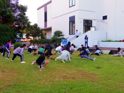 おはようございます。 公開日 2023/10/18 更新日 2023/10/18 学校日記 2日目の朝も快晴です! 朝の集いでみんな元気な姿を確認しました(^^)/ 校長先生の話を聞いて体操を行いました。 朝の空気がおいしいですね☆ 朝食をしっかり取って今日の活動の活力にします! いいね(0)