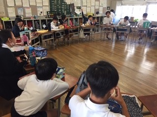 今日は「なかよしウォーク」が中止になったので、教室でお弁当を食べています。普段の給食とは違うので、学年によって小さなグループになったり、全員で輪を作っています。みんなお家の方が作ってくれたお弁当を嬉しそうに食べています。朝早くからのご準備ありがとうございます。子どもたちは空っぽのお弁当箱を持って帰ります。今日の様子のお話を聞いてあげてください。(高学年では「足りない!」の声が・・・。)
