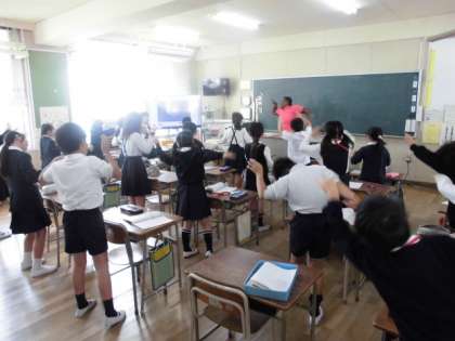 今日は英語活動の基本でもあるアルファベットソングをリズミカルに歌って盛り上がりました(^^)/ジェスチャーもつけたり、スピードアップしたりと、バリエーションを増やして取り組みました(^^♪