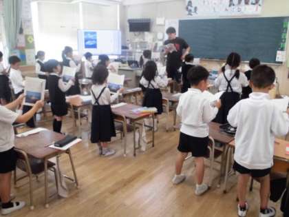 学習のようすです。 公開日 2023/11/02 更新日 2023/11/02 学校日記 1年生は全員で国語科の教科書を音読していました。いろいろな船についての教材文で、みんなしっかりと声を出していました(^^♪ 2年生は図書館見学に行ってきたので、振り返りの活動を行っていました。広くてきれいな城東図書館、2・3年生はじっくり見学できたみたいですね(^^) 5年生は音楽学習発表会に向けて合唱の練習に励んでいました。 キレイなハモリ、期待しています☆ いいね(0)