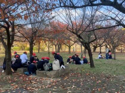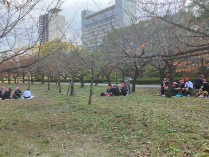 午前中の見学を終え、大阪城公園にて昼食です。