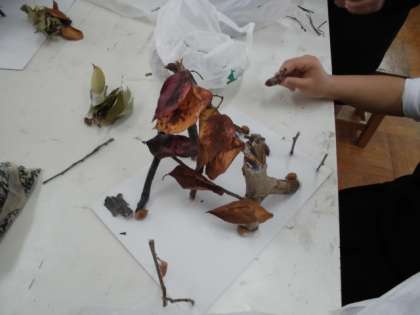 4年生は公園等で拾ってきた小枝やどんぐり、落ち葉などを使い、それぞれが面白いアイデアで作品作りに励んでいました(^^)