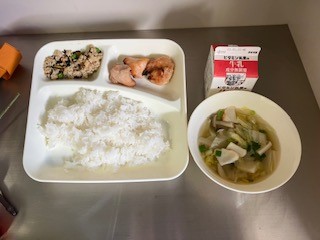 寒い毎日が続いています。寒さに負けない食事を取っているでしょうか?ごはんや、パン、うどんは体を温めるためのエネルギーになります。カボチャやみかん、白菜は寒さに対する抵抗力をつけます。筋肉や血のもとになり、寒さで使った体力を回復させるものとして、魚や卵、豆腐、大豆などがあります。栄養のバランスのよい食事を取り、寒さに負けない丈夫な体をつくりましょう。