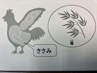 今日は、カレーソテーに「ささみ」が使われています。「ささみ」は鶏の胸の部分にある肉です。笹の葉に形が似ていることから「ささみ」と呼ばれています。脂肪が少なく、たんぱく質を多く含んでいます。