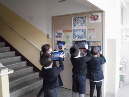 お気に入りの場所。 公開日 2024/01/18 更新日 2024/01/18 学校日記 1年生はタブレットのカメラ機能を使って、校内のお気に入りの場所の撮影を行いました。初めて使う機能に子ども達は興奮気味でした(^-^) 教室や廊下、講堂などお気に入りの場所で写真を撮っていましたよ(^^) いいね(0)
