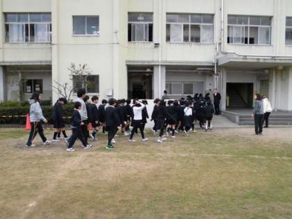 運動場に避難した後は津波に備え、改めて4階校舎の方へ避難しました。