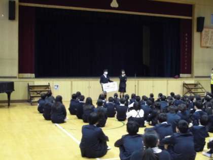 寒いけど、今週もスタートです! 公開日 2024/02/05 更新日 2024/02/05 学校日記 今朝は雨が降っていたので、講堂で全校朝会を行いました。 講堂内はひんやりとしていましたね(^-^; それでも子ども達は、先生の話をしっかり聞いていましたよ☆ 代表委員会からもお知らせがありました。今週はあいさつ運動週間です。 登校時に代表委員会のみんなと元気に世界の挨拶を交わしましょう(^^)/ いいね(0)