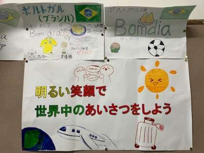 あいさつ運動 公開日 2024/02/05 更新日 2024/02/05 学校日記 今日からあいさつ週間がスタートします。児童会が中心になって行う「あいさつ運動」。2月9日(金)まで、色んな国のあいさつ「おはよう」をします。今日1日目はブラジル・ポルトガル語の「bom dia」発音は【ボンヂーア】。雨の中、傘をさしてあいさつできるようカードを持って、登校するお友達に「ボンヂーア!」すると、登校した児童も大きな声で「ボンヂーア!」とあいさつをしていました。 いいね(0)