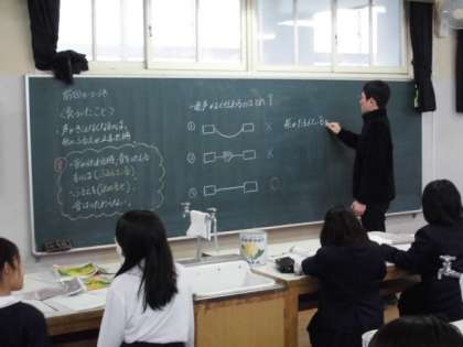 3年生は理科室で理科の学習を行っていました。音の伝わり方について、みんなで考えたことを発表していましたよ(^^ゞ