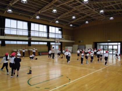 1・2年生は合同体育を行っていました。グループに分かれ、タブレットを見ながら振り付けの練習。教え合いながら取り組む姿が良かったです(^^)
