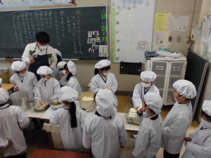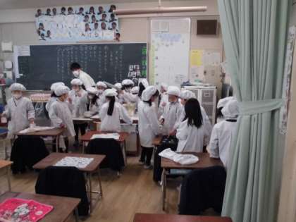 給食当番、頑張ってます!