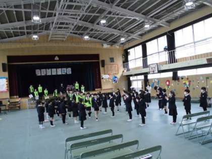 1年生が代表で、各縦割り班の班長でもある6年生のお兄さん、お姉さんに寄せ書きを渡しました。6年生のみんな、とても嬉しそうでしたね(^-^)