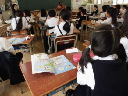 2年生は、給食の用意をしています。用意のすべてを自分たちでできるようになりました。