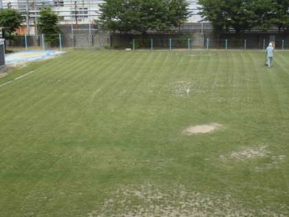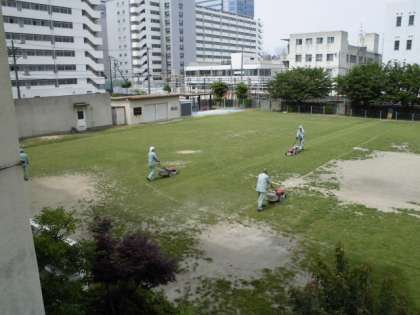 たくさんの方々が関わって、運動場の芝生が維持されています。