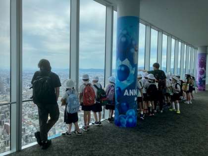 到着後、ハルカスの説明を聞いて展望台に上り、大阪の様子を見学しました。