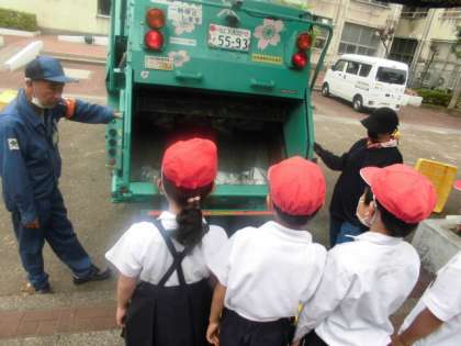 ごみの種類やパッカー車の音楽の違い、停止ボタンがたくさんあることなどいろいろなことを知ることができました。