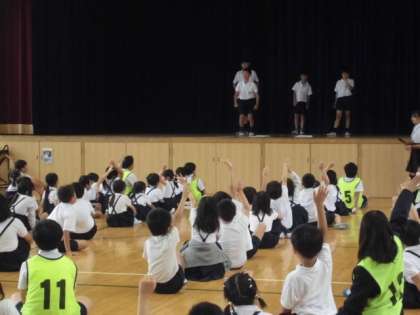 今日は、「なんのスポーツでしょう」をしていました。たくさんのいろいろなスポーツのものまねを見て、楽しみながら答えていました。