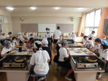 どの班も上手に炒めて、おいしい!と言いながら食べていました。