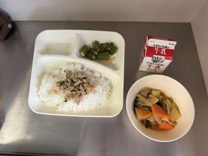 今日の給食(7月1日(月)) 公開日 2024/07/01 更新日 2024/07/01 学校日記 今日の給食は、ごはん、牛乳、鶏肉と野菜のみそ煮、オクラの梅風味、ツナっ葉いためでした。ツナっ葉いためはご飯にかけて食べますが、白ご飯との相性がばっちりでご飯が進みます! いいね(0)