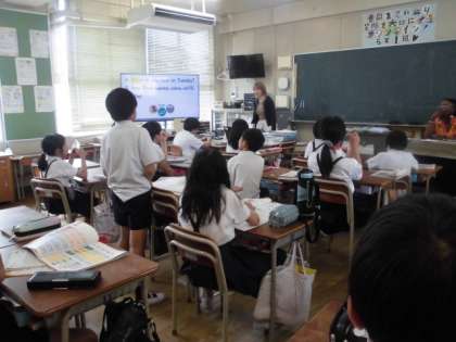 5年生は、英語で教科を覚えるチャンツをしていました。楽しみながら覚えていました。