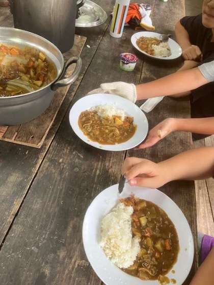 7月11日 5年生自然体験学習 公開日 2024/07/11 更新日 2024/07/11 学校日記 野外炊飯 カレーライス ついにできました。 苦労して、仲間と協力してつくったカレーは、格別です。 おいしいですね。 感謝していただきます。 「いただきます!」 いいね(0)