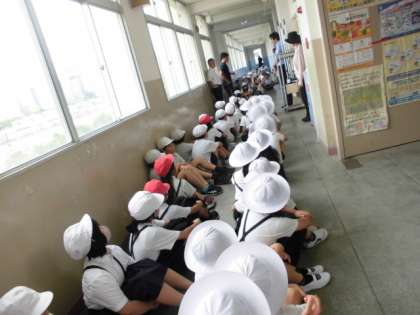 今日は地震、津波の避難訓練を行いました。地震と津波について各クラスで話し合い、様々な状況でも避難できるように訓練を実施しました。