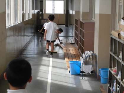 昼休み後の掃除時間には、いつもすみずみまできれいに掃除しています。